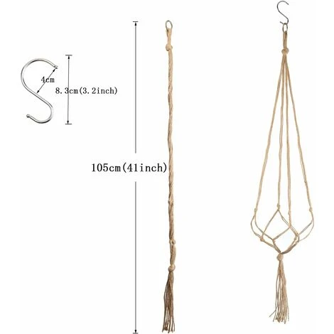 Easy to handle and hang, just extend the 4 leg ropes, put the plant pot in the middle of the conjunction.