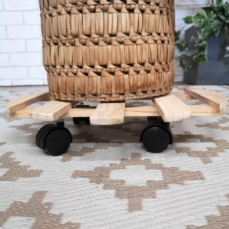 35cm Round Wooden Garden Plant Pot Flower Trolley Stand On Wheels