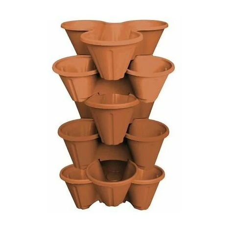 6 x STRAWBERRY PLANTER -STACKED IN TRIOS – GARDEN PLANTS PLASTIC POT -TERRACOTTA