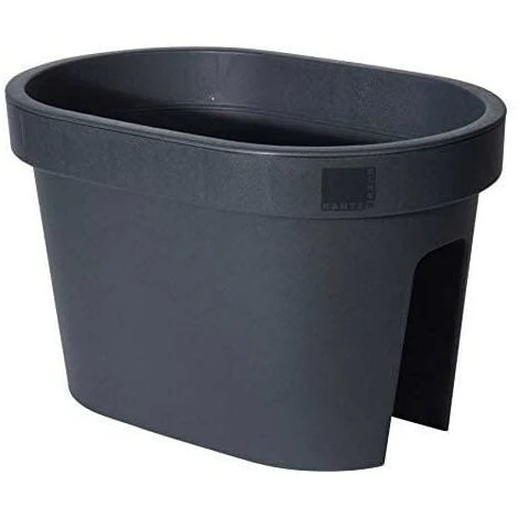 The balcony planter fits railings up to 6 cm wide. Features oval design measures approx. (LxWxH) 40 x 26 x 24,5 cm.
