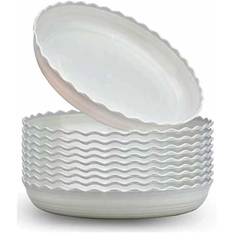 【Super Preferential Package】 This package includes 10 packs of 21.5cm / 8.5 inch vegetable saucers, each flower pot saucer measures 21.5cm at the top and 18cm at the bottom , White
