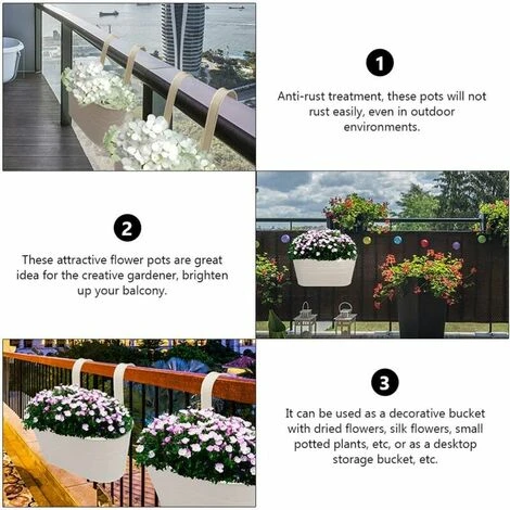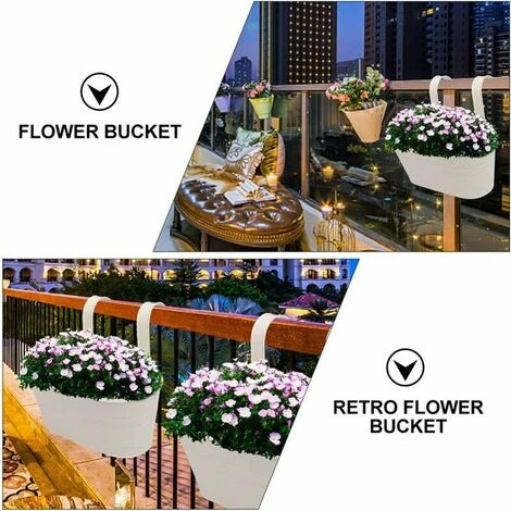 WIDE USE: These special metal bucket pot with an attached hook can be hung on the railing, balcony, window, anti- theft net, fence, indoor or outdoor anywhere, also can be used as a desktop.