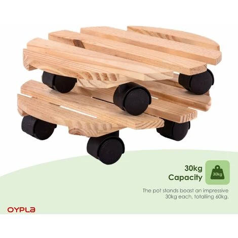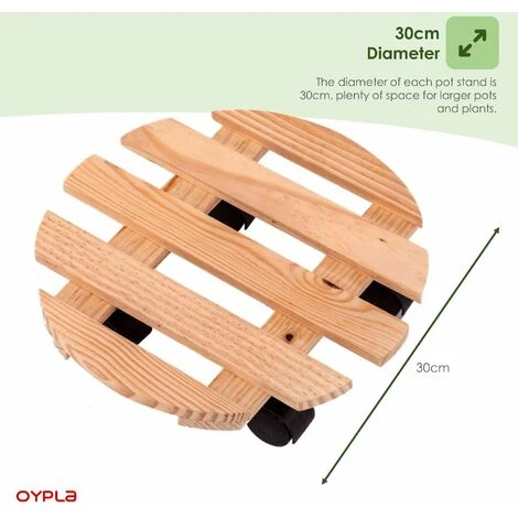 Set of 2 30cm Wooden Plant Flower Pot Mobile Mover Trolley Stands