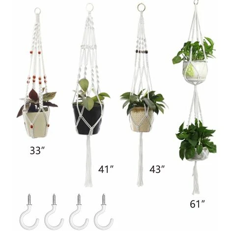 5.[Package include]- 4 Pcs /4 different size, The size is as shown. This plant hanger will fit a variety of flower pot shapes and sizes.