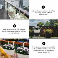 Hanging Planter Flower Pot Balcony Planters Metal Bucket Garden Hanging Planter For Railing Fence Balcony Garden Home Decoration,BR-Vie