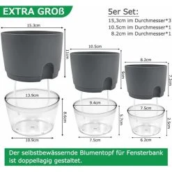 Window Sill Herb Pot Kitchen Set 5 Herbs Set For Kitchen, 15.3/10.5/8.2cm, For Fresh Kitchen Herbs, Gray