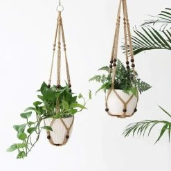 Plant Hanger Hanging Basket For Indoor Planter Flower Pot Holder Jute Rope With Beads 89cm