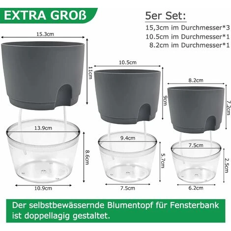 - High quality: the flowerpot self-watering and the inner basket is made of high quality heat and cold resistant plastic. High strength and toughness make it safe and durable to use. You can also separate the upper and lower layers to lift it up for filling. The water can be stored for 7-15 days. Don’t worry about the plant drying out when you’re away for a few days.